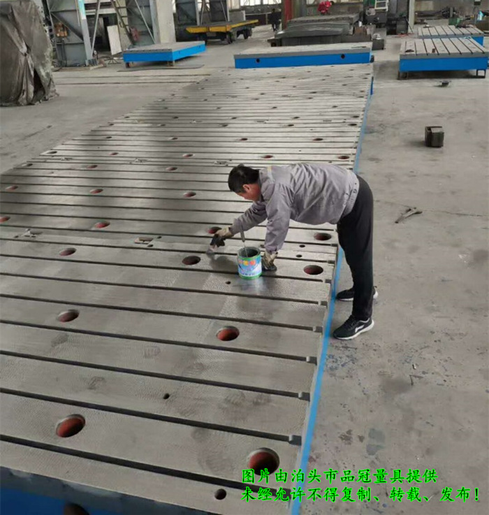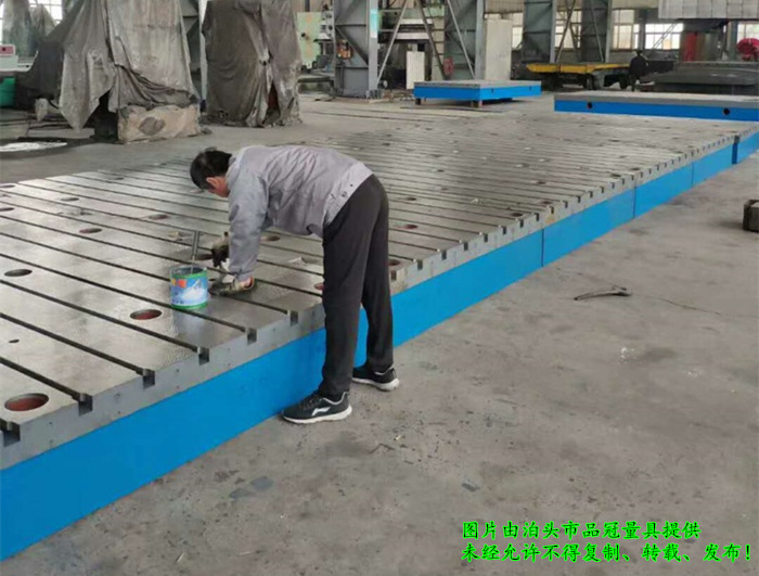 拼接裝配平臺(tái)適用于大于4000X8000規(guī)格的大型鑄鐵平板,因?yàn)閱螇K鑄鐵平板面積過(guò)大,不容易運(yùn)輸或安裝的大型鑄鐵平板。采用小規(guī)格鑄鐵平板拼接的方式來(lái)完成。這種拼接的方式對(duì)拼接平臺(tái)使用絲毫沒(méi)有影響。