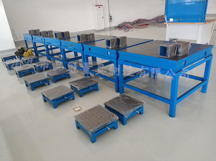 鑄鐵平臺又稱鑄鐵平板,外觀基本上是箱體式,工作面有長方形、正方形、圓形等,材料為HT200-300,QT400-600,采用刮研工藝,工作面上可加工V形、T形、U形槽、燕尾槽、圓孔、長孔等,是用于工件、設(shè)備檢測、劃線、裝配、焊接、組裝、鉚焊的平面基準(zhǔn)量具。